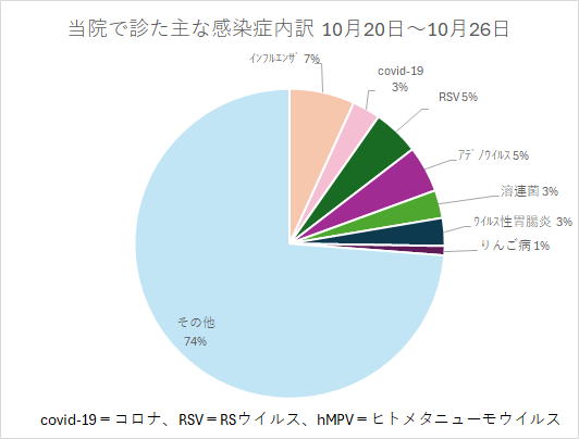 | うえだこどもクリニックにおける主な感染症の患者さんの割合です |